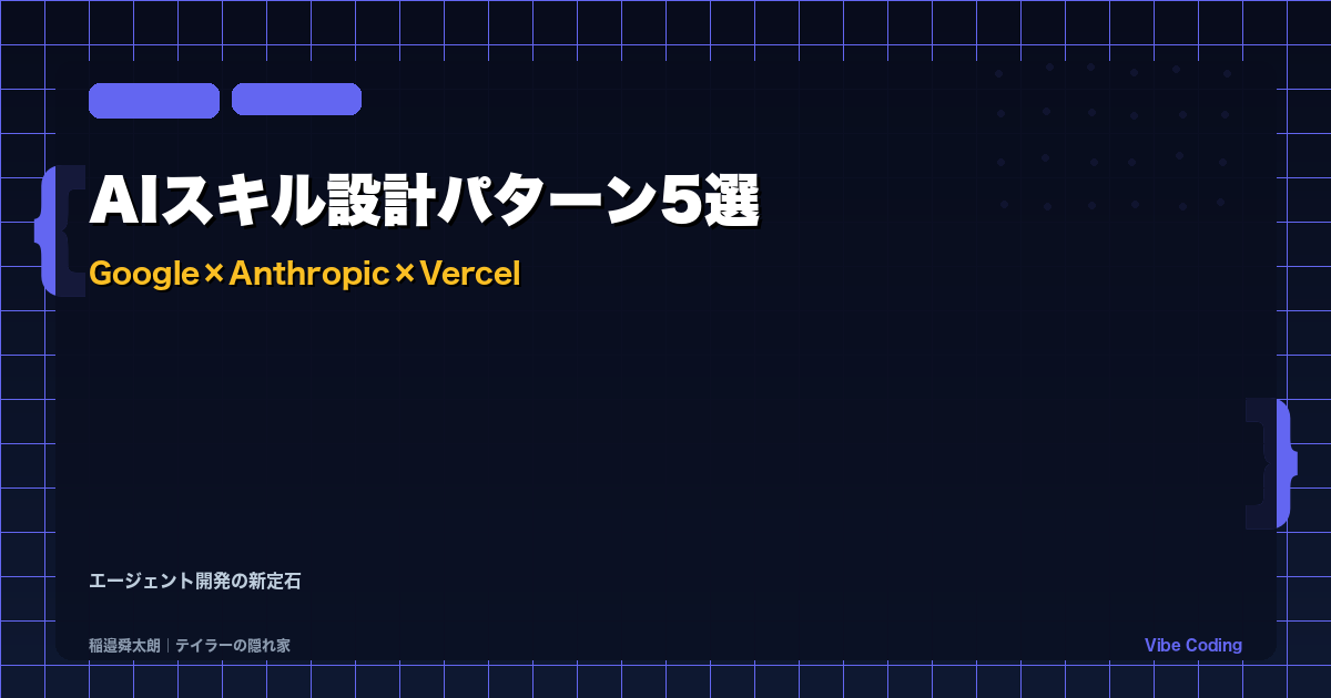 AIスキル設計パターン5選【2026年最新】Google×Anthropic×Vercel——エージェント開発の新定石