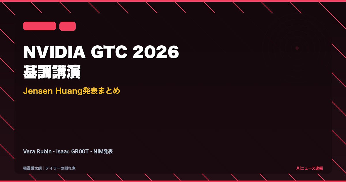 NVIDIA GTC 2026の基調講演が2026年3月16日、サンノゼのSAPセンターで開催された。Jensen Huang CEOは約2時間にわたり、次世代GPUアーキテクチャ「Vera Rubin」の量産開始、物理 … 続きを読む