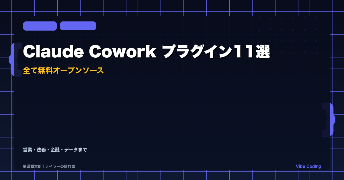 Claude Cowork プラグイン11選【2026年最新】全て無料オープンソース——営業・法務・金融・データまで