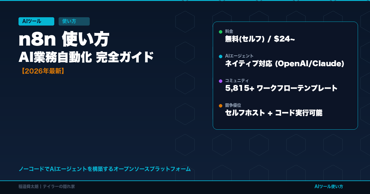 n8n 使い方【2026年最新】AI業務自動化を完全ガイド——ノーコードでAIエージェントを構築する方法