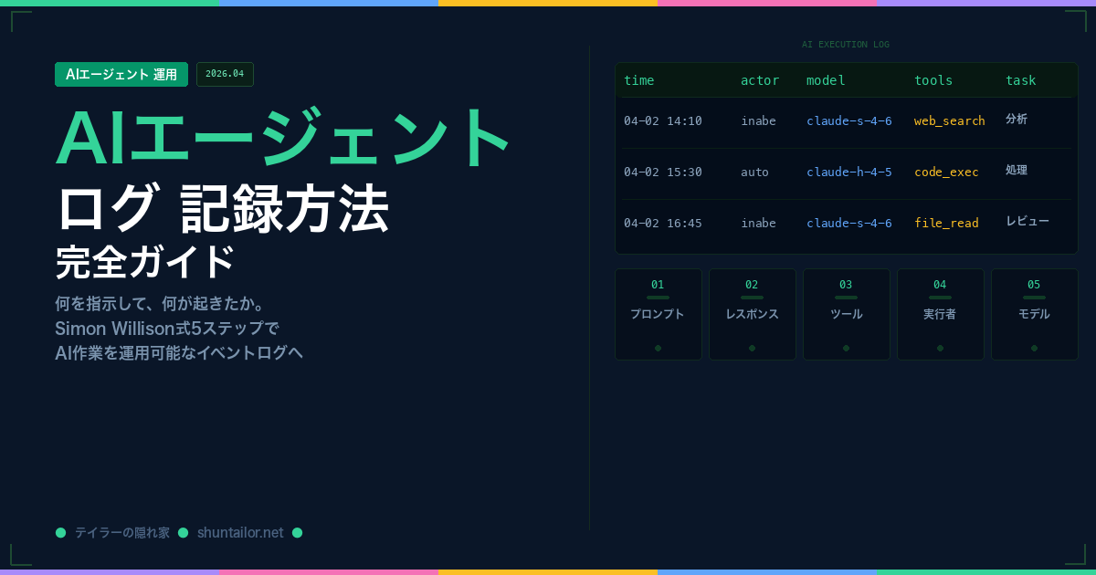 AIエージェント ログ 記録方法【2026年最新】Simon Willison式5ステップ完全ガイド