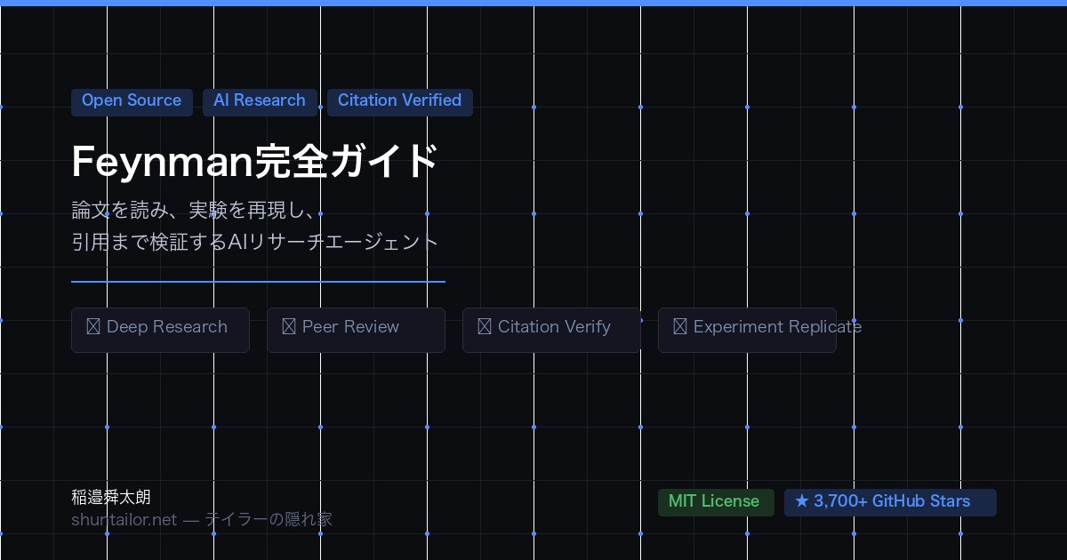 Feynman AIリサーチエージェントは、その疑問そのものを自動化するオープンソースのAIリサーチツールだ。論文を読み、ウェブを検索し、下書きを書き、実験を実行し、すべての主張に引用をつける。しかもローカルで動く。