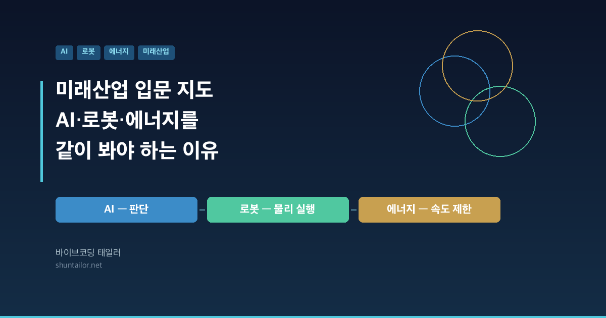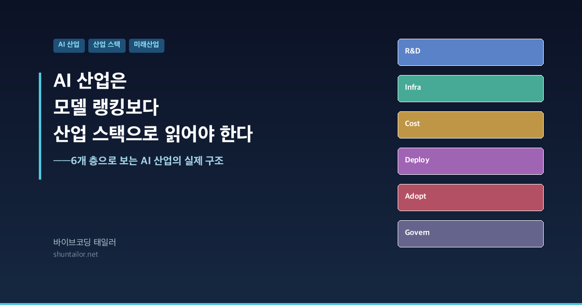 시리즈 최종편을 읽기 전에 이 글을 최대한 깊이 이해하려면 1~5편을 먼저 읽는 것이 좋습니다. 하지만 시간이 없다면, 각 편의 “가장 중요한 한 문장”만이라도 기억해 두세요. 1편: “미래산업은 AI·로봇·에너지가 같은 전력망과 공장에서 만나는 연결 산업이다” 2편: “AI 산업은 모델 랭킹이 아니라 R&D→인프라→추론비용→배포→운영→거버넌스의 6층 스택이다” 3편: “휴머노이드는 466만 대 설치 기반 위의 다음 층이지, 독립 시장이 아니다” … Read more