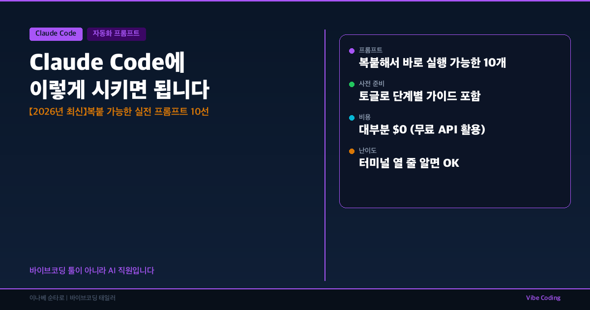 Claude Code에 이렇게 시키면 됩니다 — 복붙 가능한 자동화 프롬프트 10선